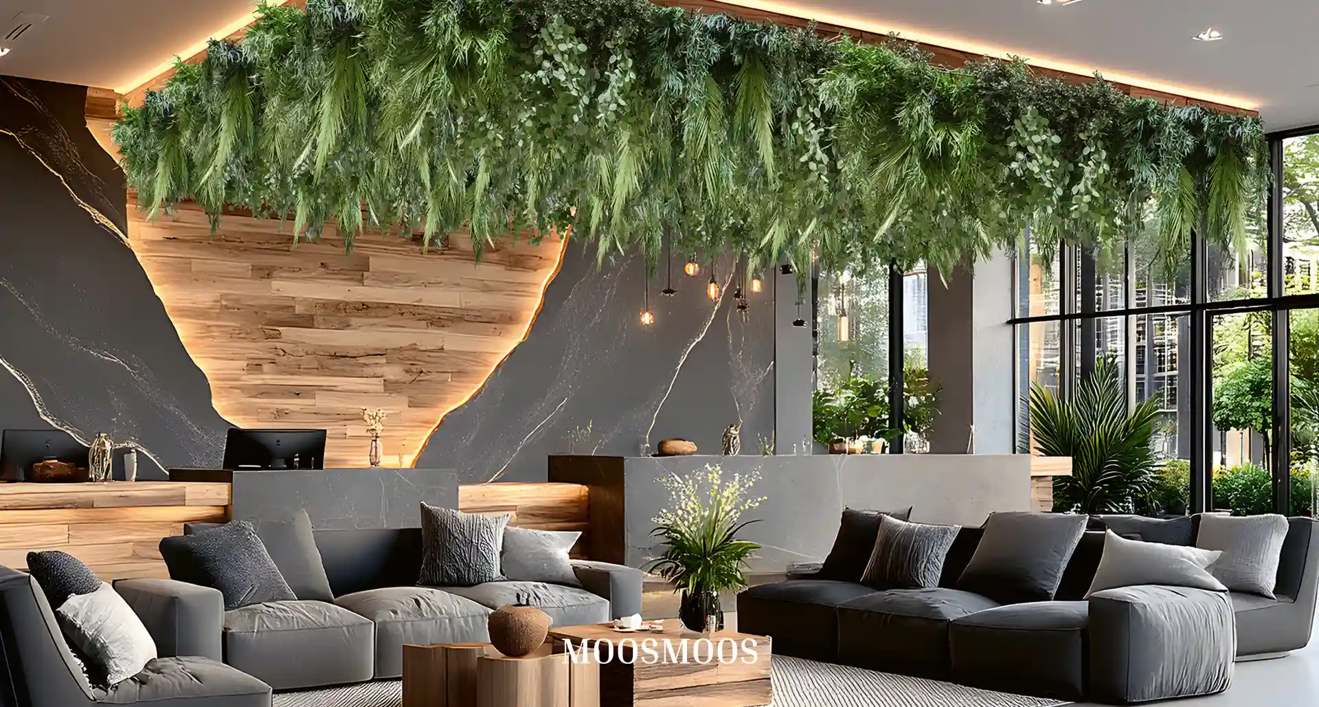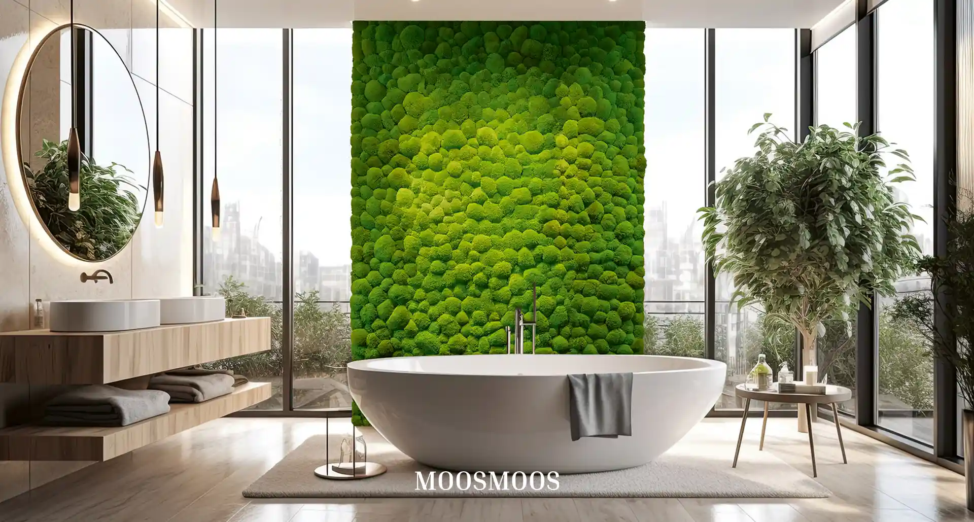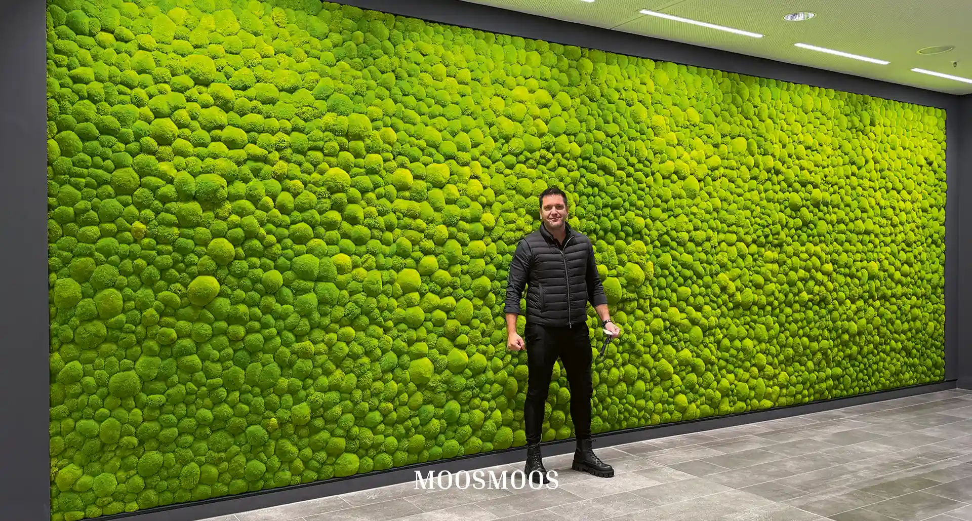 Why not cover entire moss walls, furniture, or panels with moss? Moss surfaces are not only visually appealing but also offer additional benefits for the indoor climate. Thus, a distinct area of interior design gradually emerged, and the MOOSMOOS Manufactory was born. Since 2017, we have grown continuously and now employ around 70 people in production, administration, and sales. With our locations in Germany and Spain, we serve customers worldwide and support interior architects, designers, indoor landscapers, and exhibition stand builders. Our products, such as preserved moss walls, maintenance-free moss walls, and moss carpets, create a unique feel-good atmosphere in modern Biophilic Design. Naturalness and sustainability are at the heart of our work. Experience the fascination of moss and transform your spaces into green oases with our innovative moss products!