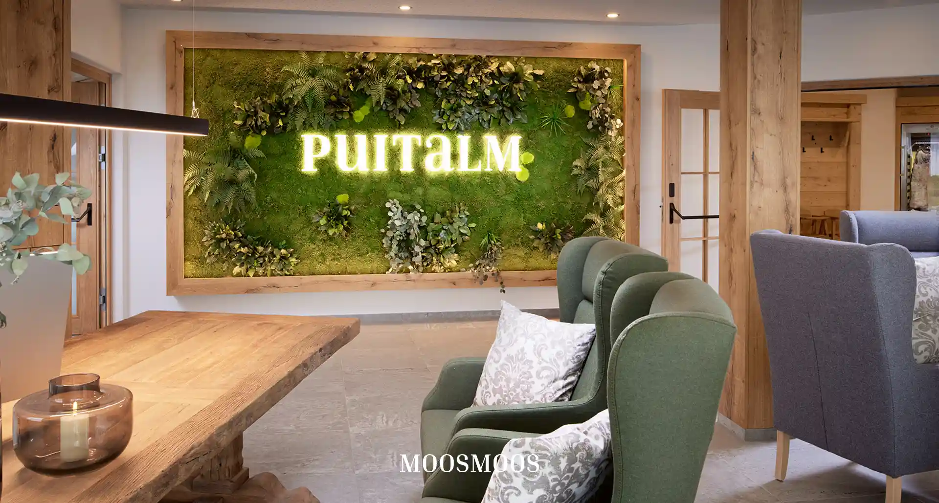 Why not cover entire moss walls, furniture, or panels with moss? Moss surfaces are not only visually appealing but also offer additional benefits for the indoor climate. Thus, a distinct area of interior design gradually emerged, and the MOOSMOOS Manufactory was born. Since 2017, we have grown continuously and now employ around 70 people in production, administration, and sales. With our locations in Germany and Spain, we serve customers worldwide and support interior architects, designers, indoor landscapers, and exhibition stand builders. Our products, such as preserved moss walls, maintenance-free moss walls, and moss carpets, create a unique feel-good atmosphere in modern Biophilic Design. Naturalness and sustainability are at the heart of our work. Experience the fascination of moss and transform your spaces into green oases with our innovative moss products!